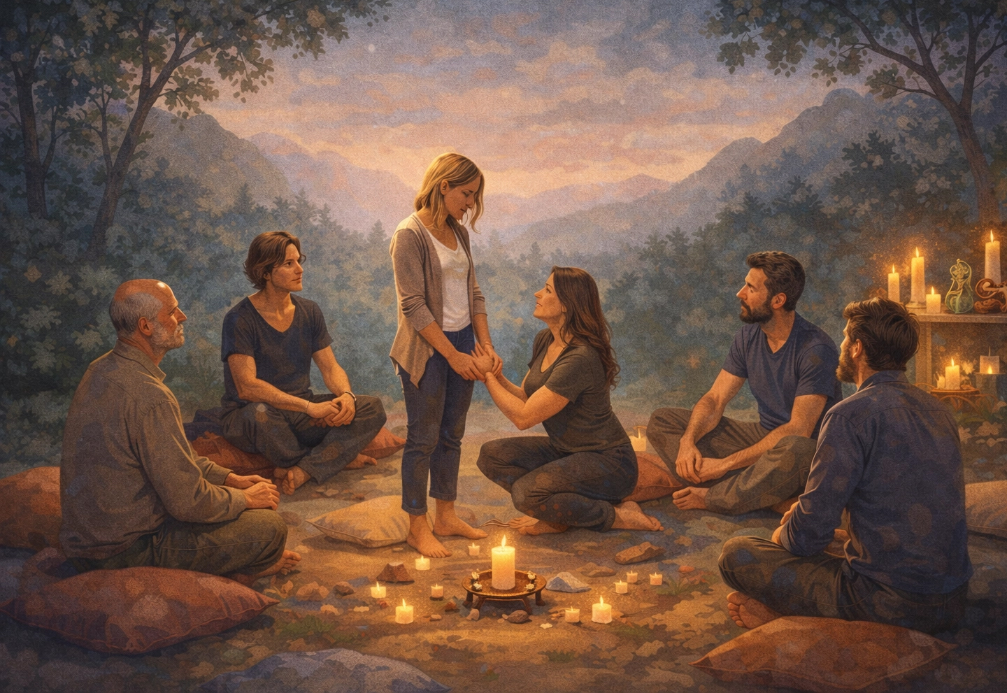 Ezt a szemléletet és munkamódot a csoportfolyamatba is beemelem. A csoportalkalmak elején közösen megérkezünk a térbe: letisztítjuk mindazt, amit a mindennapokból magunkkal hozunk, és megnyitjuk azt a minőséget, amelyben valódi jelenlét és kapcsolódás tud megszületni. A folyamat során, a résztvevők aktív, tudatos jelenléte mellett, személyes és csoportszintű felismerések és oldódások egyaránt megjelennek.